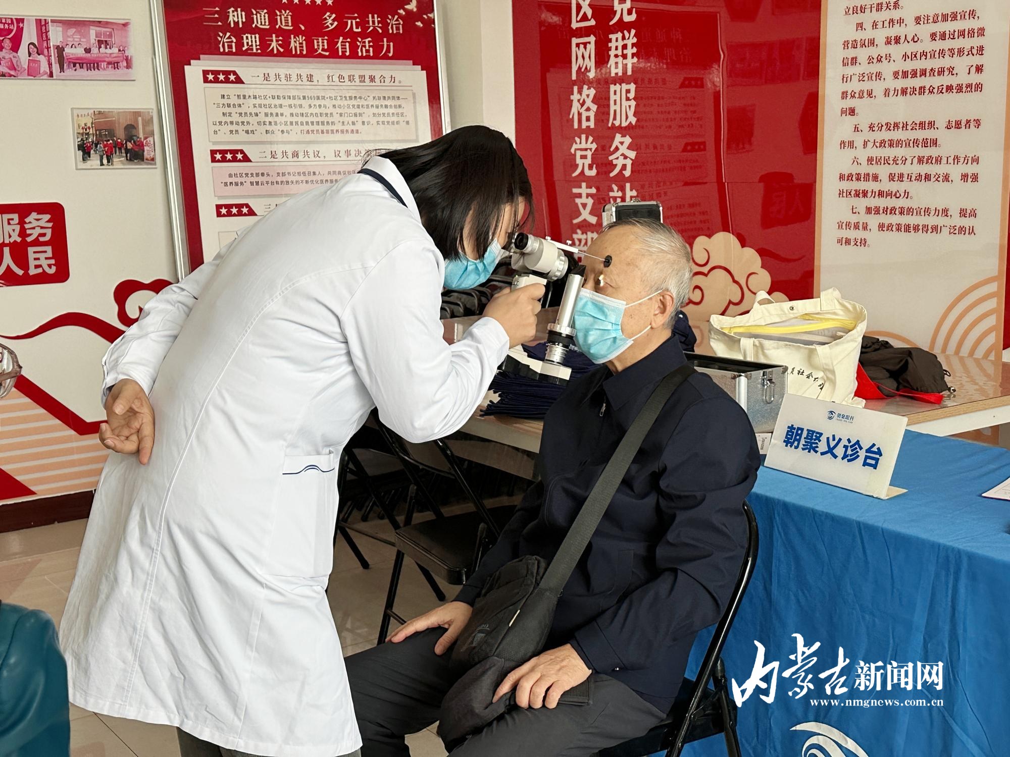 “醫(yī)生,我最近看報(bào)紙總覺(jué)得字發(fā)虛,是不是白內(nèi)障又加重了?”“您別著急,先坐好,我?guī)湍屑?xì)查查眼底?!?0月10日上午,呼和浩特市新城區(qū)海拉爾路街道哲里木路社區(qū)戎輝小區(qū)活動(dòng)室內(nèi)暖意融融,醫(yī)護(hù)人員正耐心地為居民做眼部檢查。當(dāng)日,哲理木路社區(qū)聯(lián)合內(nèi)蒙古朝聚眼科醫(yī)院在這里開展眼科義診活動(dòng)。