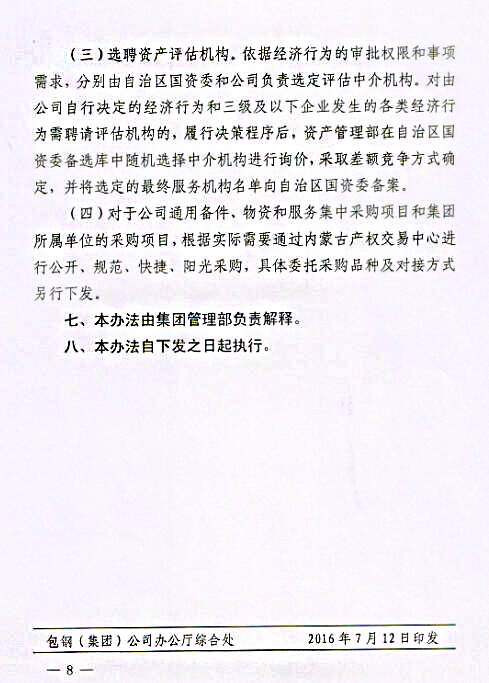 下一條:關(guān)于印發(fā)《包鋼(集團(tuán))公司關(guān)于進(jìn)一步強(qiáng)化采購招投標(biāo)管理實施辦法(試行)》的通知