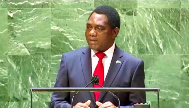 △贊比亞總統(tǒng)希奇萊馬在聯(lián)合國大會一般性辯論上發(fā)言