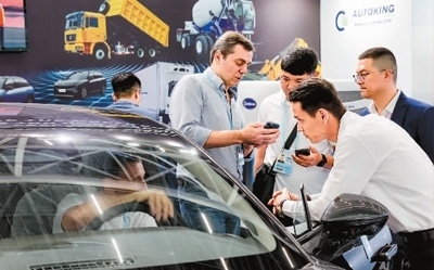 日前,外國(guó)采購(gòu)商在廣交會(huì)新設(shè)置的新能源及智能網(wǎng)聯(lián)汽車展區(qū)了解中國(guó)新能源汽車產(chǎn)品。新華社記者 劉大偉攝
