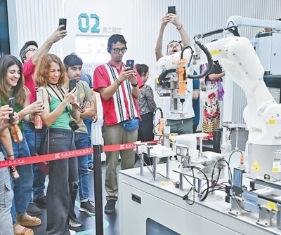 拉美代表參觀襄陽數(shù)字工業(yè)創(chuàng)新中心時,被智能化的工業(yè)設(shè)備所吸引。朱熙勇攝