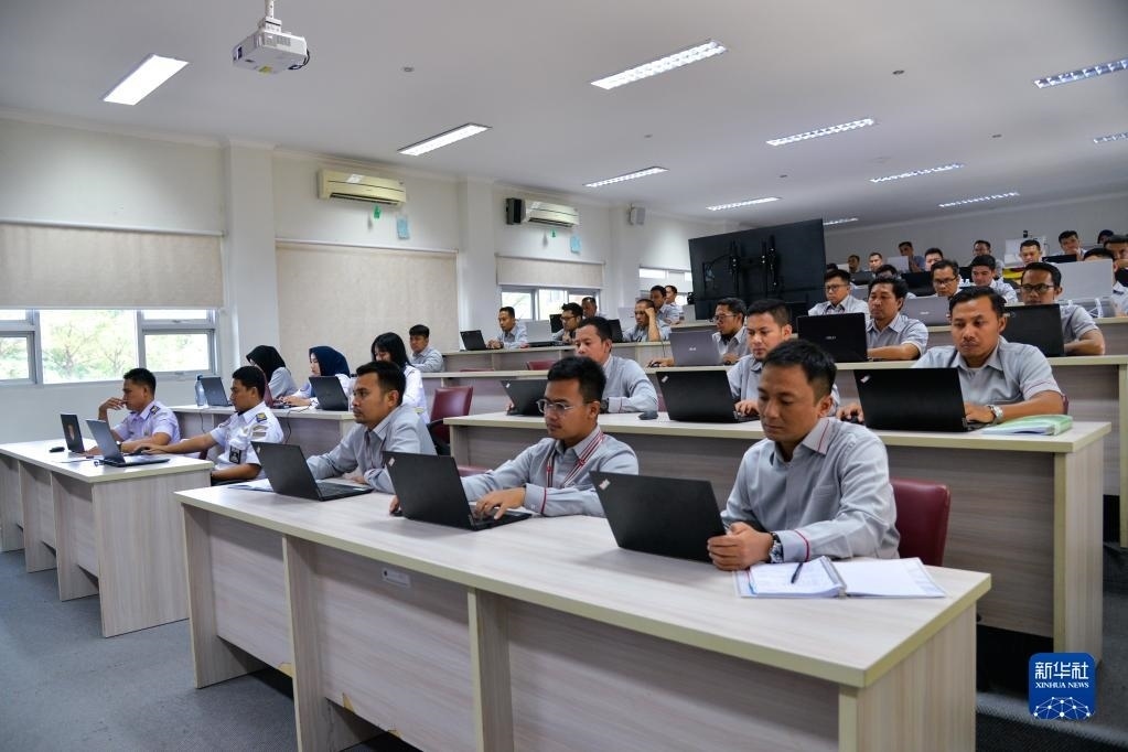 6月7日,在位于印度尼西亞茉莉芬市的印尼鐵路理工學(xué)院,學(xué)員在接受雅萬高鐵運(yùn)行控制中心調(diào)度人員培訓(xùn)。