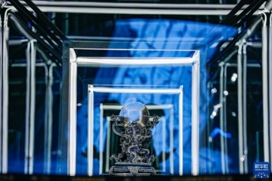 10月18日,在第81屆世界科幻大會主場館——成都科幻館內(nèi),兩名觀眾從藝術裝置作品《共生紀元》前走過。