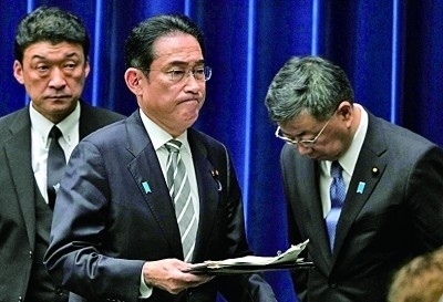 2023年12月13日,受自民黨內(nèi)部曝出“黑金政治”丑聞影響,日本首相岸田文雄(中)在日本東京首相官邸召開記者會。新華社發(fā)