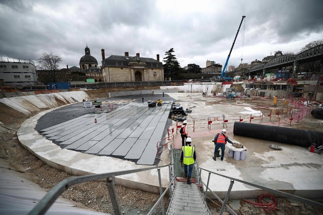當(dāng)?shù)貢r間2024年3月13日,法國巴黎,建造中的巨型地下雨水蓄水池,用于暴雨來襲時儲存雨水。