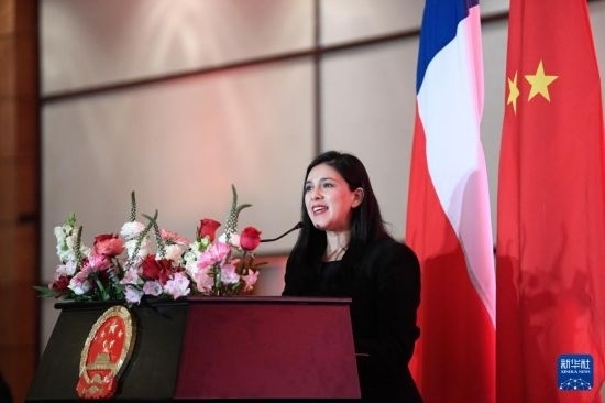 9月30日,智利眾議長(zhǎng)卡羅爾·卡里奧拉在圣地亞哥舉行的慶祝中華人民共和國(guó)成立75周年招待會(huì)上致辭。新華社發(fā)(豪爾赫·比列加斯攝)