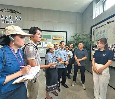 老撾記者在成都大熊貓繁育研究基地對大熊貓保護(hù)工作進(jìn)行采訪。老撾《人民報》記者 薩納尼·蓬帕迪攝