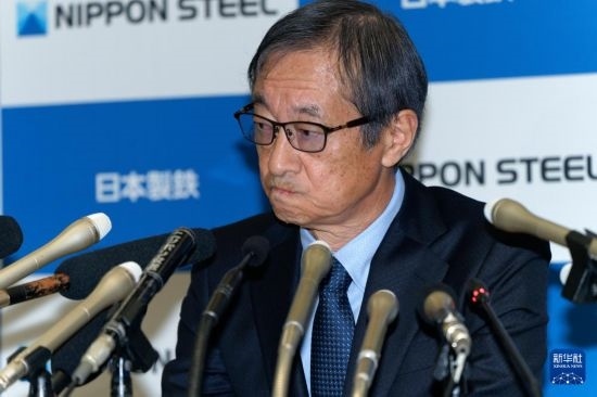 1月7日,在日本東京,日本制鐵公司會(huì)長(zhǎng)兼首席執(zhí)行官橋本英二出席記者會(huì)。新華社記者 張笑宇 攝