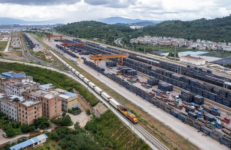 當日,中老鐵路國際貨物列車(玉溪—萬象)實現(xiàn)雙向開行。中老鐵路自2021年12月開通以來,截至今年7月底,運輸貨物超6450萬噸,其中跨境貨物突破1490萬噸。