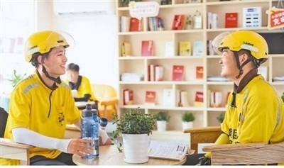 江蘇省淮安市打造集閱讀休息、補給茶水、醫(yī)療等多功能為一體的驛站,為外賣騎手、網約車司機等新就業(yè)群體從業(yè)人員提供暖心服務。趙啟瑞攝(人民視覺)