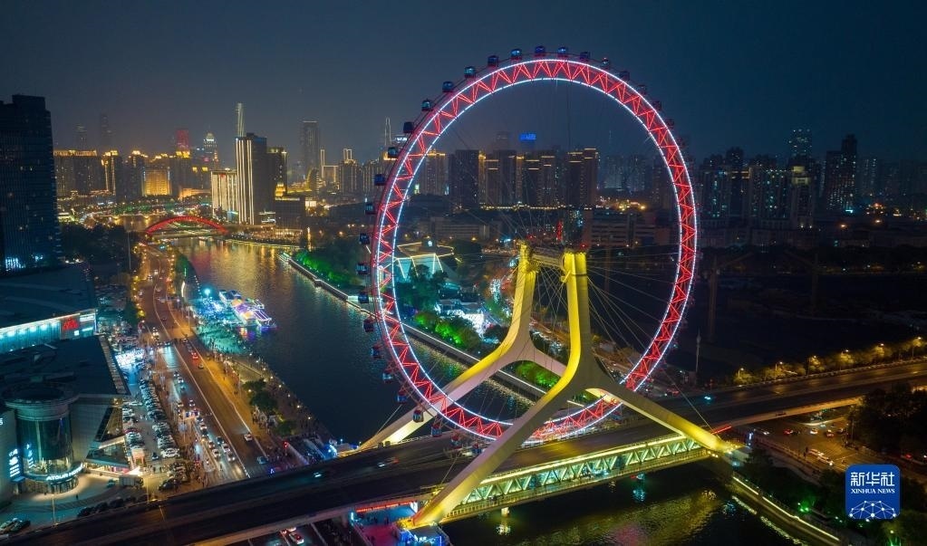 近日,天津市地標(biāo)景觀之一的“天津之眼”摩天輪完成整體更新改造,迎接即將到來(lái)的“五一”假期。此次提升改造更換了48個(gè)全新轎廂,包含12個(gè)內(nèi)設(shè)天屏和地屏的“智能科技”主題轎廂,用來(lái)播放天津文旅宣傳視頻,增強(qiáng)游客的觀景體驗(yàn)感。新華社記者 孫凡越 攝