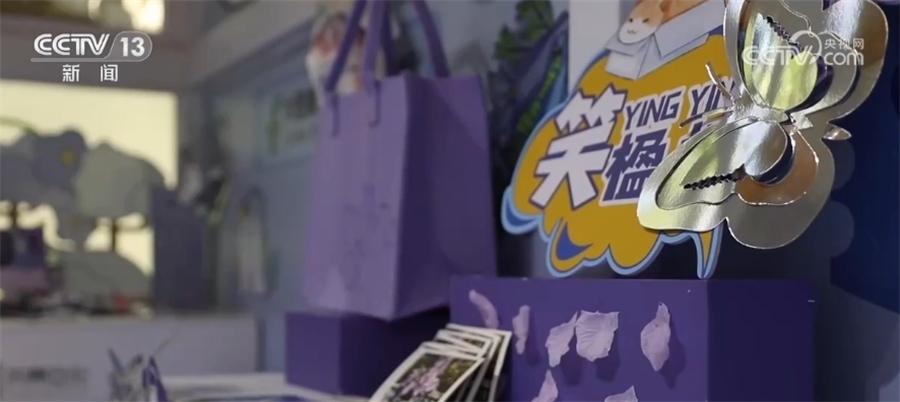總臺記者 郭琳潔:我手上這個明信片就是在身后的藍(lán)花楹主題郵局購買的,寫好之后就可以在這里郵遞出去了。在賞花之余,游客們可以在創(chuàng)意景觀打卡拍照,在文創(chuàng)市集逛一逛,寄一張明信片,留下在這里的浪漫時光。