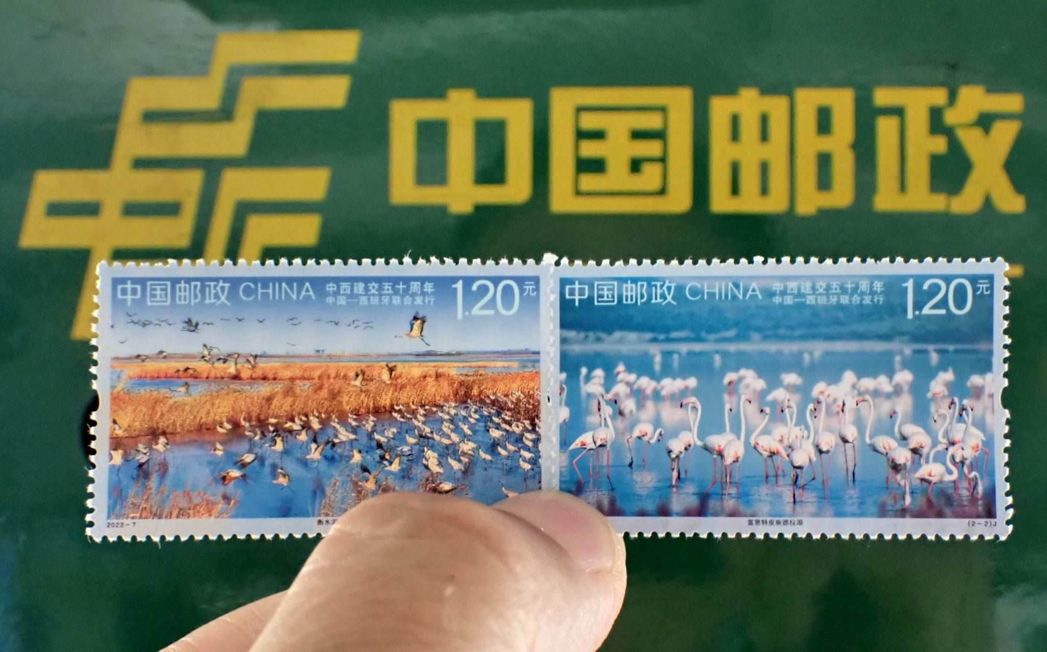 2023年5月10日,中國郵政發(fā)行《中西建交五十周年》紀(jì)念郵票(與西班牙聯(lián)合發(fā)行),紀(jì)念郵票1套2枚。視覺中國