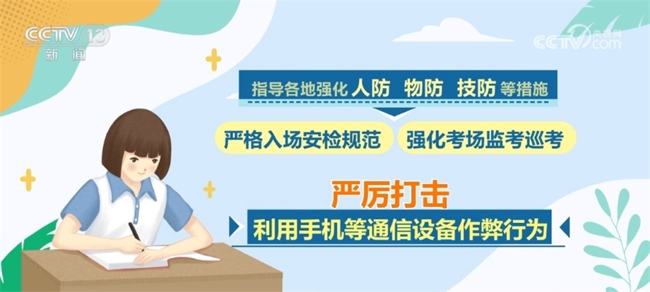 同時,會同公安部、工業(yè)和信息化部等部門聯(lián)合開展打擊作弊專項行動,將防范手機作弊作為重中之重,多措并舉、綜合施策,指導各地強化人防、物防、技防等措施,嚴格入場安檢規(guī)范,強化考場監(jiān)考巡考,嚴厲打擊利用手機等通信設備作弊行為。對于在高考中存在作弊行為的考生和人員,將依法依規(guī)嚴肅處理,堅決維護高考的公平公正。