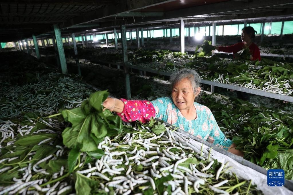 重慶市黔江區(qū)將石漠化治理與蠶桑產(chǎn)業(yè)發(fā)展相結(jié)合,在石漠化地里栽植桑樹(shù)養(yǎng)蠶,蠶繭加工成絲織品銷(xiāo)往多個(gè)國(guó)家和地區(qū),增加了當(dāng)?shù)剞r(nóng)民收入,同時(shí)也改善了當(dāng)?shù)氐纳鷳B(tài)環(huán)境,減少了水土流失。新華社發(fā)(楊敏 攝)