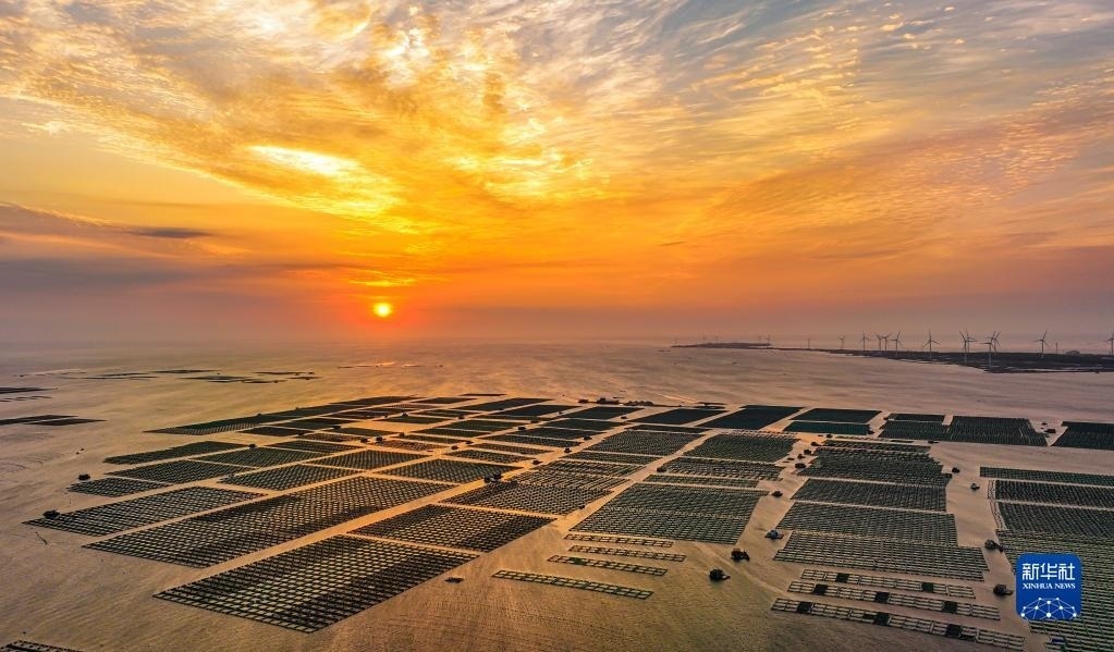 山東榮成:海洋牧場(chǎng)朝霞如畫(huà)