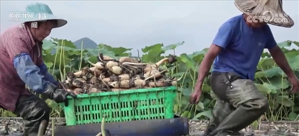 央視網(wǎng)消息:廣西柳州市柳江區(qū)的蓮藕已經(jīng)進入采收季,藕農(nóng)們搶抓晴好天氣,加緊采收新鮮蓮藕供應市場。