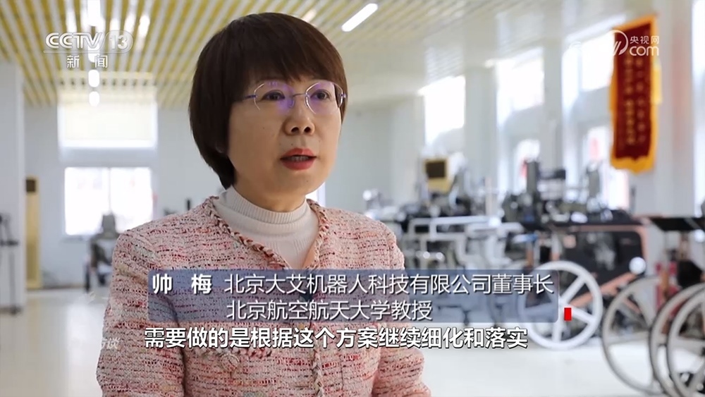 北京大艾機器人科技有限公司董事長、北京航空航天大學教授帥梅:“就是通過外骨骼機器人訓練,來給他建立正確的行走模式,以及正確的本體感覺,讓他能重新行走。”