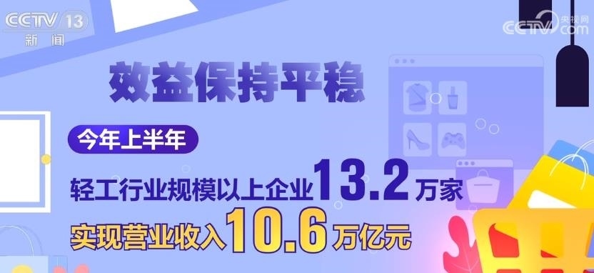 效益保持平穩(wěn)。今年上半年,輕工行業(yè)規(guī)模以上企業(yè)13.2萬家,實(shí)現(xiàn)營(yíng)業(yè)收入10.6萬億元,同比增長(zhǎng)2.1%,高于全國(guó)工業(yè)2.5個(gè)百分點(diǎn),實(shí)現(xiàn)利潤(rùn)5682億元。