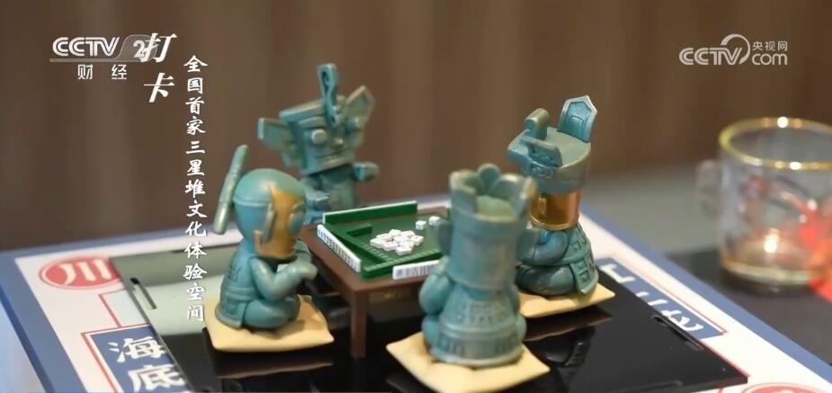 成都臺(tái)記者 劉然然:大家看我手中拿著的銅人,是按照三星堆博物館中的青銅人首鳥身像藏品復(fù)刻的。無(wú)論是造型還是材質(zhì),都盡量做到和館藏一致。這里是三星堆博物館官方授權(quán)的全國(guó)首家體驗(yàn)空間。