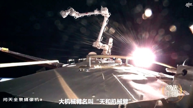 小機械臂名叫“問天機械臂”,雖然承載力只有3噸,但十分靈活。