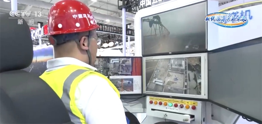 服貿會工作人員 趙晨曦:我現(xiàn)在控制的塔吊位于湖北省武漢市,距離展會現(xiàn)場1200公里?,F(xiàn)在我們來旋轉大臂,我們可以看到運行過程非常流暢。接下來我們來落吊鉤,畫面也是幾乎沒有延遲。