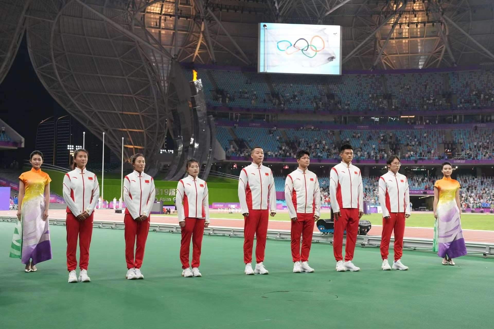 10月4日晚,在杭州亞運會田徑比賽全部結(jié)束后,中國奧委會為蘇炳添、謝震業(yè)、吳智強、湯星強、切陽什姐、劉虹和呂秀芝補發(fā)了奧運會獎牌。