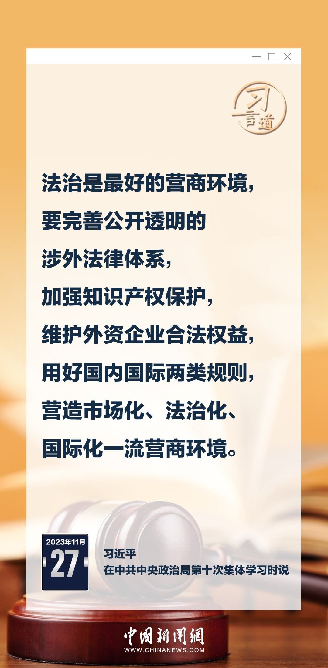 中共中央政治局11月27日下午就加強涉外法制建設進行第十次集體學習。中共中央總書記習近平在主持學習時強調——