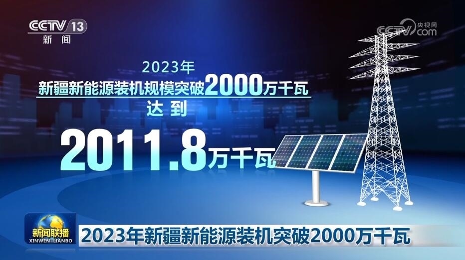 央視網(wǎng)消息(新聞聯(lián)播):國家電網(wǎng)最新數(shù)據(jù)顯示,2023年,新疆新能源裝機(jī)規(guī)模突破2000萬千瓦,達(dá)到2011.8萬千瓦,是2022年全年總和的5倍,新增新能源裝機(jī)規(guī)模在全國排名第一,約占到西北電網(wǎng)的42%。