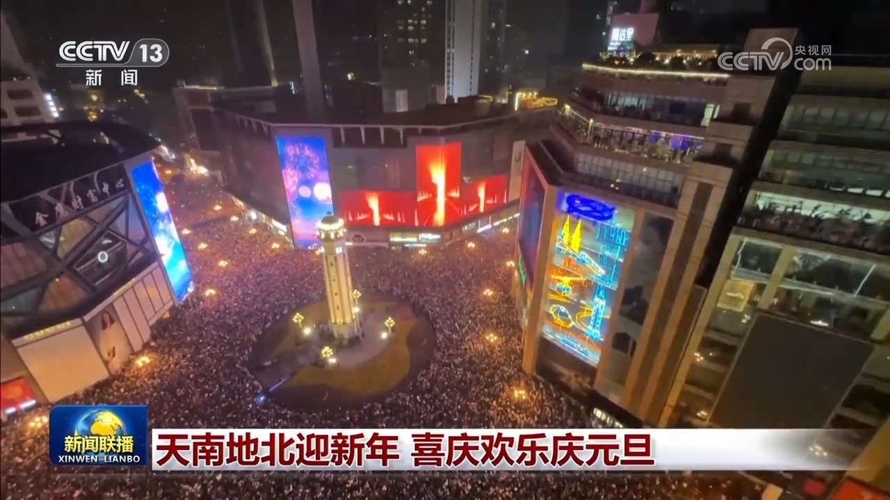 跨年夜,神州大地一派歡樂。在北京,新年倒計時主場活動在首鋼園舉行,精彩紛呈的光影秀、燈光雕塑、文藝表演等,將園區(qū)變成了歡樂的海洋。在江西南昌,充滿科技與未來感的燈光秀,在城市樓宇間變幻出一幅幅美麗的畫卷。在海南??凇不帐徍?,數(shù)百架無人機擺出各種歡度節(jié)日的字樣和圖案,喜迎新年的到來。在重慶解放碑中央廣場,眾多市民和游客共同聆聽新年鐘聲,許下美好的新年愿望。