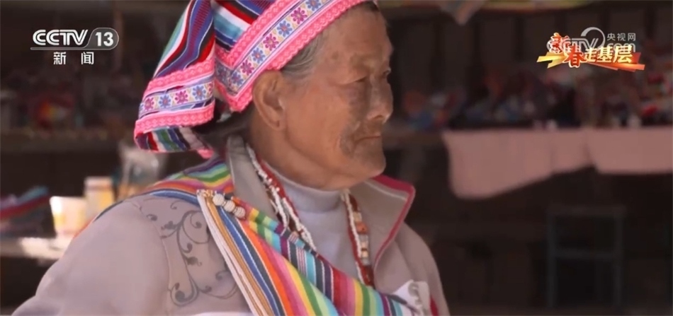 現(xiàn)在獨龍江鄉(xiāng),近千位獨龍族婦女和她一樣,在用傳統(tǒng)的方式編織著走向世界的獨龍?zhí)海钗氖四棠叹褪瞧渲兄?,她是目前獨龍族僅有的17位文面女中的一位。當(dāng)記者找到她時,老奶奶正在熟練得玩手機。自從2022年5G網(wǎng)絡(luò)覆蓋了獨龍江鄉(xiāng)的6個行政村后,李文仕奶奶除了務(wù)農(nóng)織布、唱歌跳舞,還培養(yǎng)了一個新的愛好,就是網(wǎng)上沖浪。