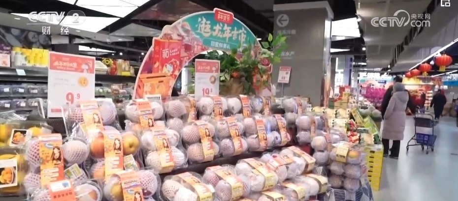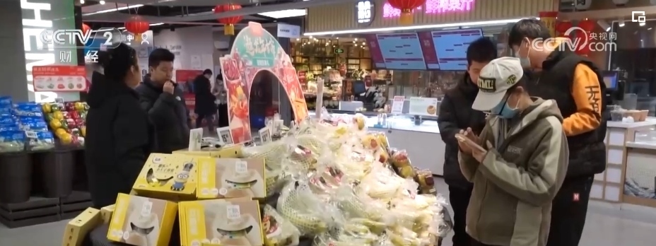 除了蘋果,各類葡萄、柑橘、車厘子、草莓、藍莓、菠蘿、榴蓮等水果也大量上市。僅記者采訪的這家生鮮超市,新奇特品種相比2023年,就有5%—10%的增長,春節(jié)前更是有100多款水果在店內(nèi)銷售,豐富了百姓的“果盤子”。