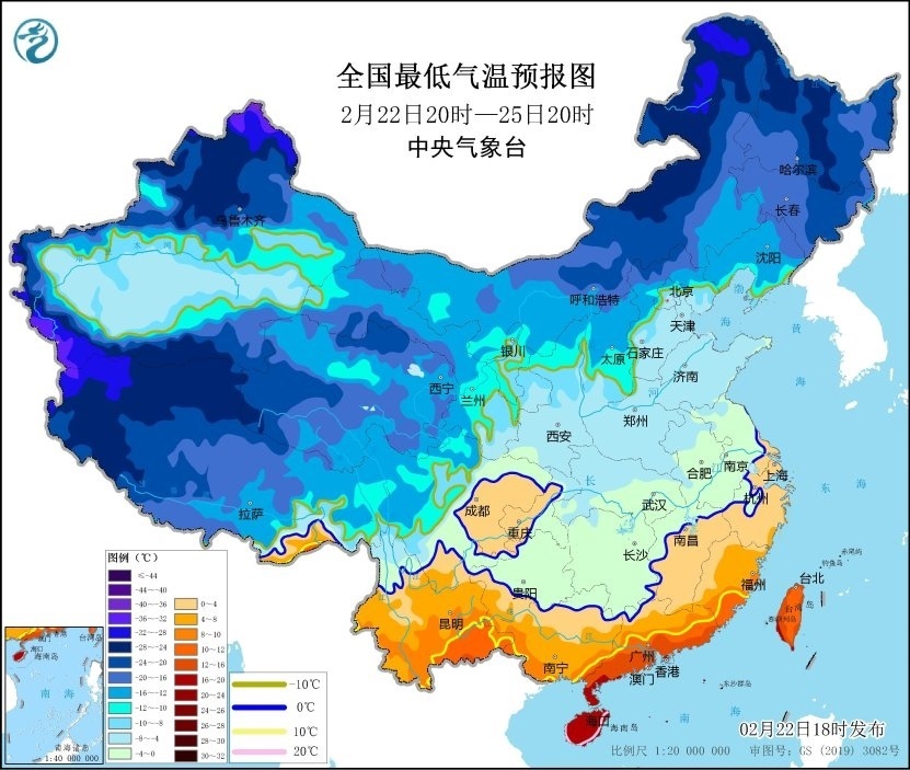 央視網(wǎng)消息:中央氣象臺(tái)2月22日18時(shí)發(fā)布低溫黃色預(yù)警,未來(lái)一周,我國(guó)大部地區(qū)氣溫將持續(xù)偏低。預(yù)計(jì),2月22日20時(shí)至25日20時(shí),黃淮、江淮、江漢、江南大部、華南中北部、西南地區(qū)東部以及陜西南部、新疆沿天山地區(qū)、西藏西部等地的日平均氣溫較歷史同期偏低5℃以上,其中江漢、江淮西部、江南中西部、華南北部、貴州中東部等地的日平均氣溫較歷史同期偏低7℃以上,最低氣溫0℃線將位于貴州南部、廣西北部、江西北部一帶。