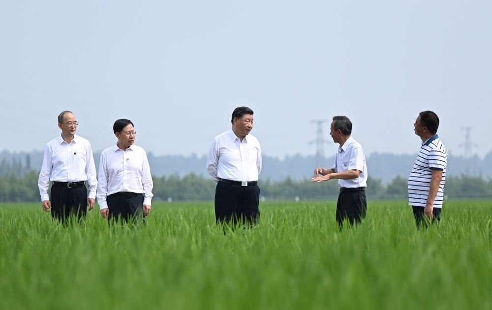 2022年6月8日上午,習(xí)近平在四川眉山市東坡區(qū)太和鎮(zhèn)永豐村高標(biāo)準(zhǔn)水稻種植基地考察,了解水稻試驗育種和種植推廣情況。習(xí)近平強(qiáng)調(diào):推進(jìn)農(nóng)業(yè)現(xiàn)代化,既要靠農(nóng)業(yè)專家,也要靠廣大農(nóng)民。要加強(qiáng)現(xiàn)代農(nóng)業(yè)科技推廣應(yīng)用和技術(shù)培訓(xùn),把種糧大戶組織起來,積極發(fā)展綠色農(nóng)業(yè)、生態(tài)農(nóng)業(yè)、高效農(nóng)業(yè)。我們有信心、有底氣把中國人的飯碗牢牢端在自己手中。