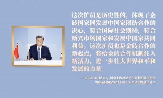 近年來(lái),習(xí)近平主席圍繞擴(kuò)大金磚合作、推進(jìn)金磚擴(kuò)員作出一系列重要論述。