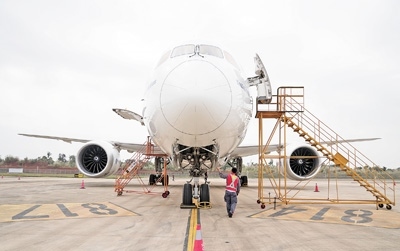 “面前這個大家伙,是來自蒙古航空的波音B787—9飛機,1月中旬飛到海南自貿(mào)港一站式飛機維修產(chǎn)業(yè)基地接受專項維修服務(wù)。我們要加緊做好發(fā)動機換發(fā)、專項維修服務(wù)和飛機封存等工作?!睏顦s川介紹。