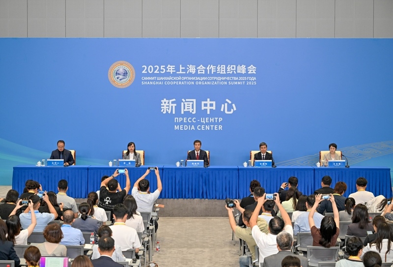 8月28日,2025年上海合作組織峰會新聞中心舉行首場吹風會。