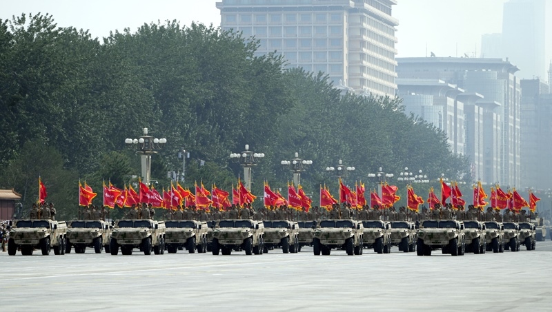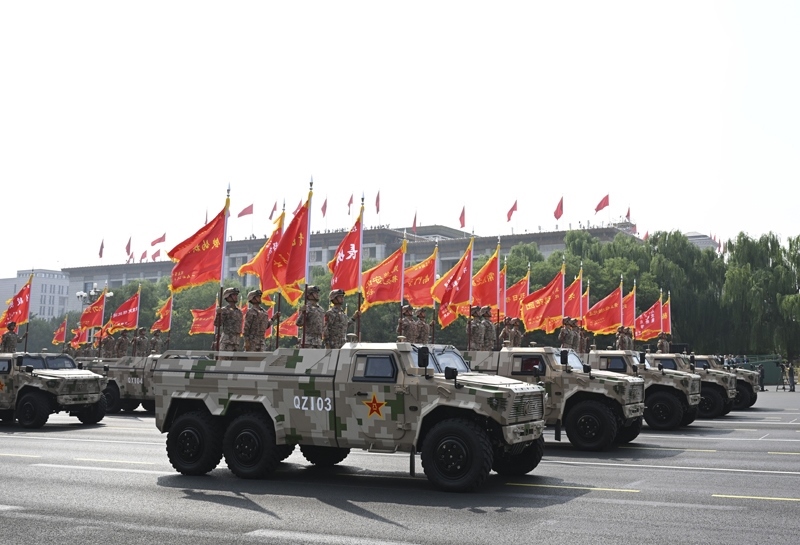 9月3日,紀念中國人民抗日戰(zhàn)爭暨世界反法西斯戰(zhàn)爭勝利80周年大會在北京隆重舉行。這是信息支援部隊方隊接受檢閱。
