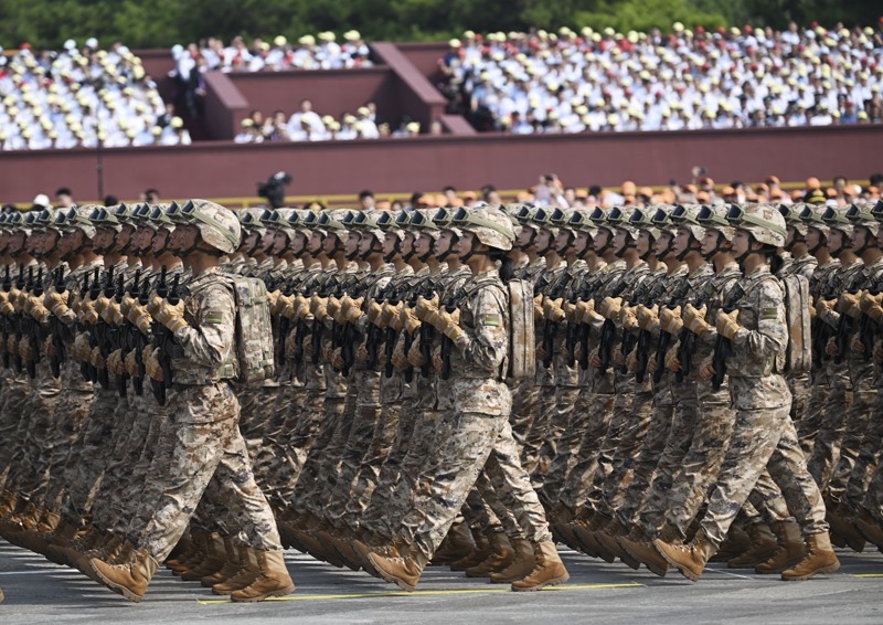 9月3日,紀念中國人民抗日戰(zhàn)爭暨世界反法西斯戰(zhàn)爭勝利80周年大會在北京隆重舉行。這是民兵方隊接受檢閱。