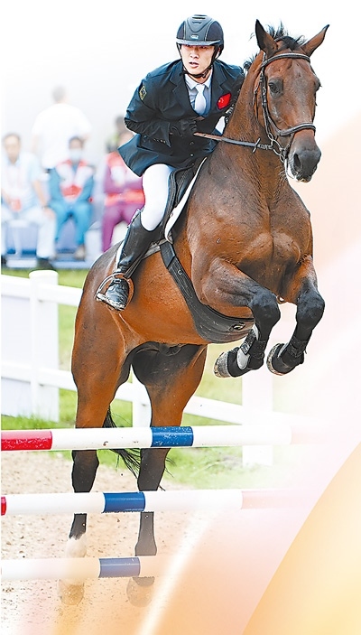 9月21日,湖北隊選手陳柏良在第十五屆全國運動會現(xiàn)代五項馬術(shù)比賽中。