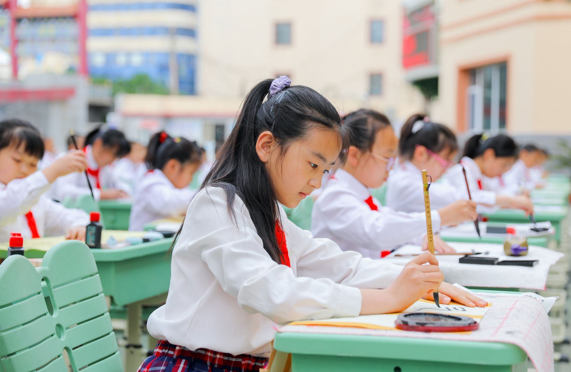 6月13日,呼和浩特市玉泉區(qū)恒昌店巷小學(xué)的學(xué)生們正在參加書法比賽。當(dāng)日,該校“校園書法文化節(jié)”漢字書寫大賽開賽,200多名學(xué)生在硬筆和軟筆項目上展開比拼。活動旨在提高孩子們漢字書寫水平,弘揚中華民族優(yōu)秀傳統(tǒng)文化。