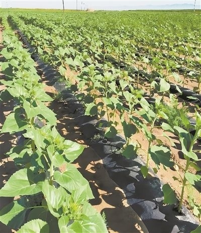 土壤經(jīng)中國(guó)農(nóng)業(yè)科學(xué)院鹽堿地改良創(chuàng)新團(tuán)隊(duì)改良后,種植的食葵長(zhǎng)勢(shì)良好。受訪者供圖