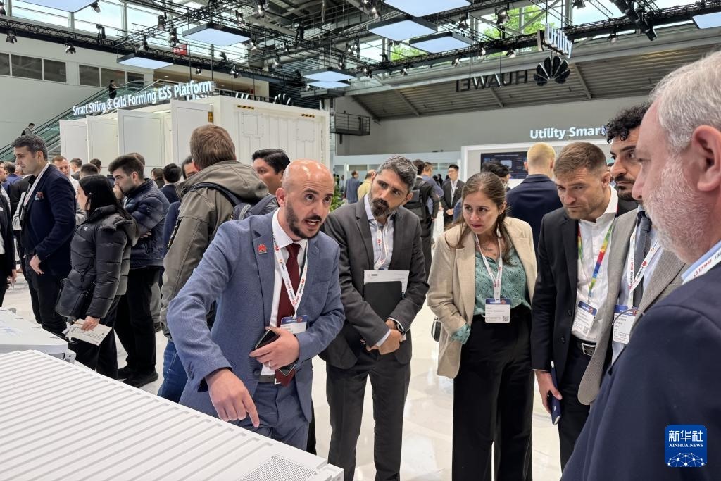 5月7日,參觀(guān)者在德國(guó)慕尼黑舉行的2025年歐洲國(guó)際太陽(yáng)能展上參觀(guān)華為展區(qū)(手機(jī)照片)。新華社記者 黃燕 攝