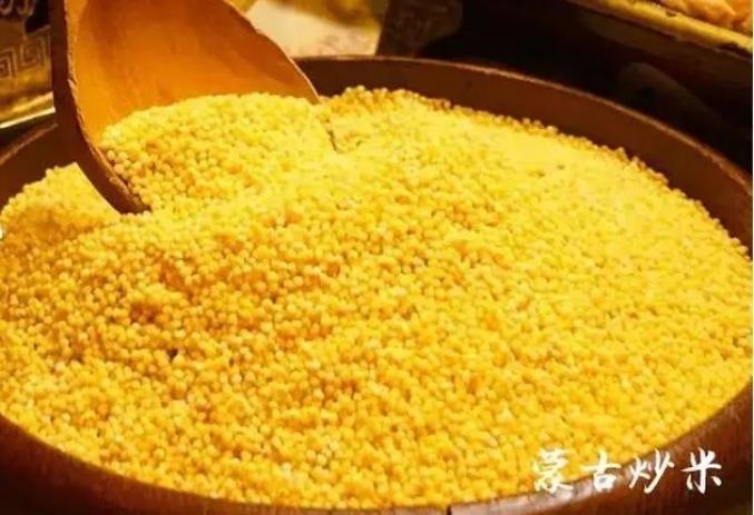 炒米是用糜子經(jīng)過蒸、炒、碾等多道工序加工而成的,加入酸奶和白糖等輔料進(jìn)行攪拌,既解餓又解渴。炒米清香爽口,是別具風(fēng)味的傳統(tǒng)食品,也是當(dāng)?shù)啬撩袢粘I钪斜夭豢缮俚氖称贰?/p>