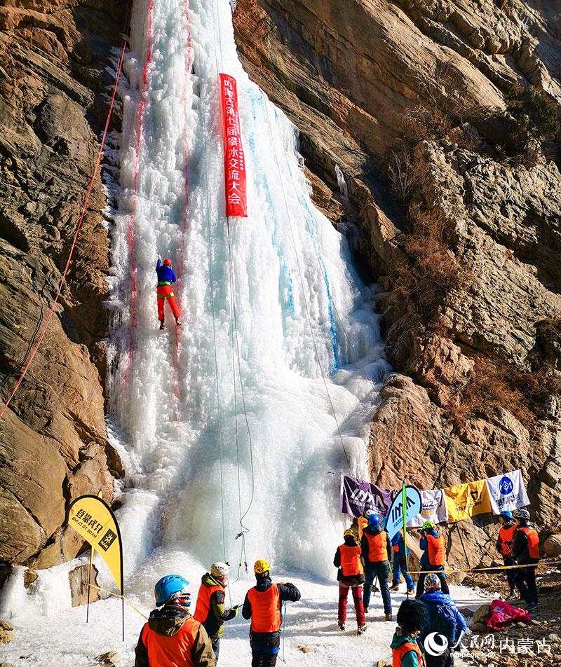1月16日,由內(nèi)蒙古登山協(xié)會(huì)、內(nèi)蒙古攀巖攀冰協(xié)會(huì)聯(lián)合舉辦的內(nèi)蒙古第七屆攀冰交流大會(huì)在包頭市土默特右旗舉行,來(lái)自?xún)?nèi)蒙古各地的攀冰愛(ài)好者和戶(hù)外運(yùn)動(dòng)愛(ài)好者在晶瑩剔透的冰瀑上挑戰(zhàn)自我,感受極限運(yùn)動(dòng)帶來(lái)的樂(lè)趣。(丁根厚)
