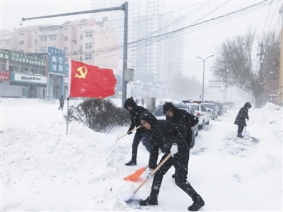 鐵路街道轄區(qū),12輛小鏟車、4輛大鏟車的發(fā)動機(jī)滾燙,全體街居干部、物業(yè)公司、保潔大隊,派出所和交警大隊等部門人員幾十人凍得手腳發(fā)麻也沒有放下手中的雪鏟,暴風(fēng)雪中,他們第一時間守在清雪保暢通的前沿陣地,“我們的目標(biāo)是‘雪停路凈’,一定要保障好群眾的安全出行?!?/p>