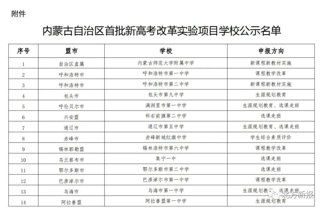 附件:內蒙古自治區(qū)首批新高考改革實驗項目學校公示名單