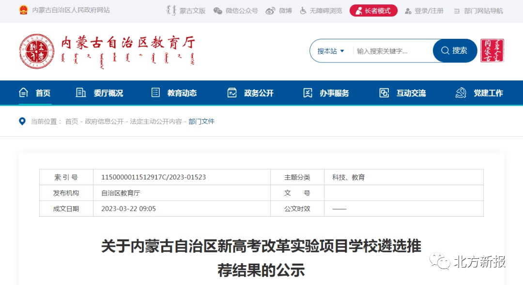 關于內蒙古自治區(qū)新高考改革實驗項目學校遴選推薦結果的公示