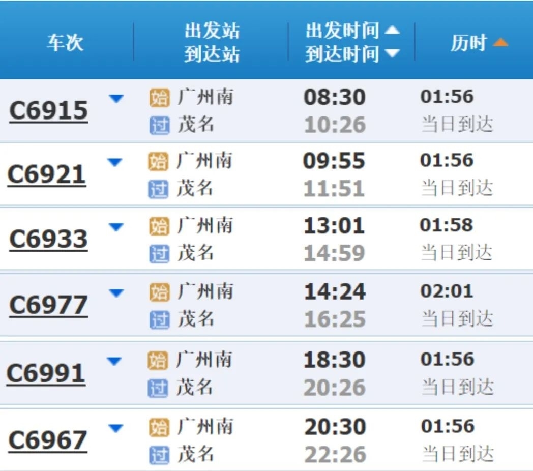 茂名站位于江湛鐵路上,是一個運(yùn)營城際列車和普速鐵路的混合車站。廣州南至茂名的城際列車日常開行45對,周末增加至52對,將茂名到廣州的旅行時(shí)間縮短至2小時(shí)左右,十分方便。