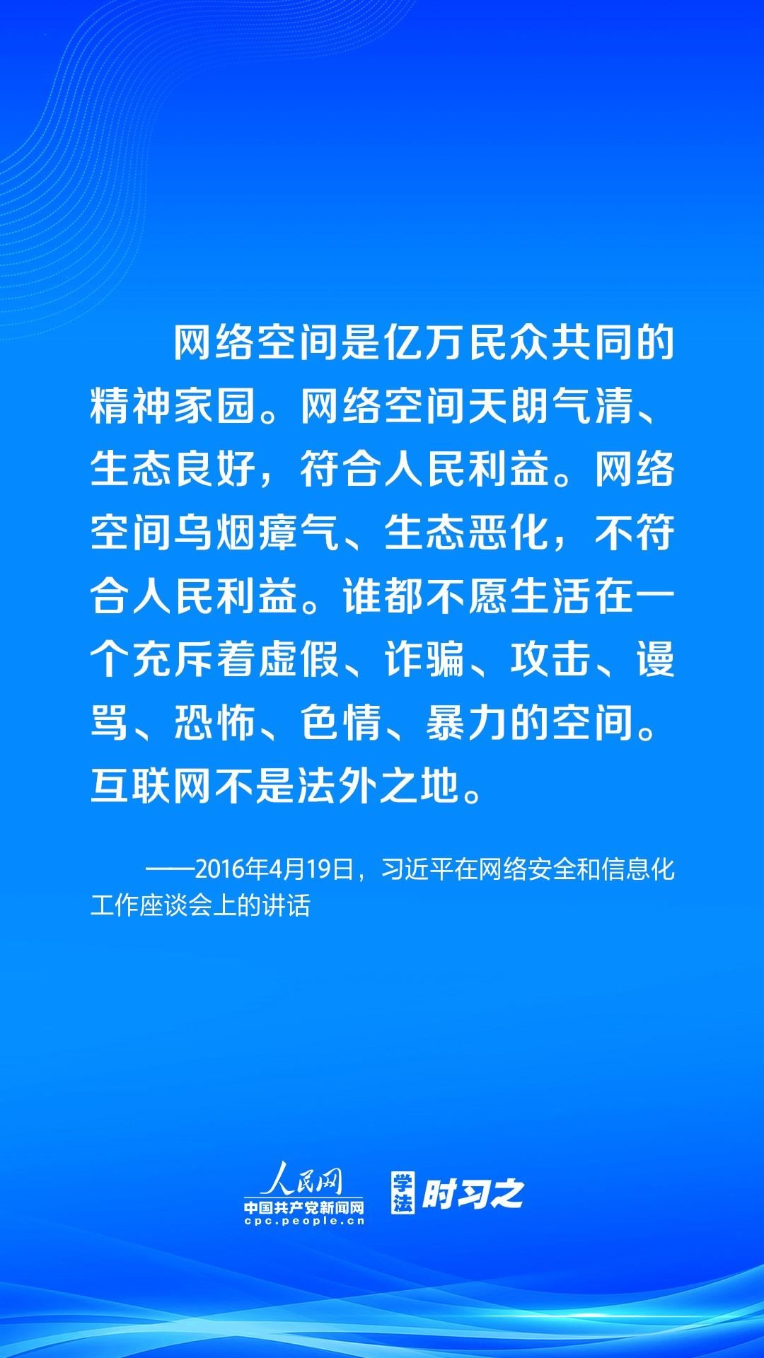 營(yíng)造風(fēng)清氣正的網(wǎng)絡(luò)空間,離不開法治手段的保障。黨的十八大以來(lái),習(xí)近平總書記高度重視網(wǎng)絡(luò)法治工作,強(qiáng)調(diào)要堅(jiān)持依法治網(wǎng)、依法辦網(wǎng)、依法上網(wǎng),讓互聯(lián)網(wǎng)在法治軌道上健康運(yùn)行。